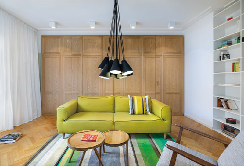 复古墨绿绒布沙发自带“陷进去就不想起来”的慵懒感,搭配雕花木质圆桌+花纹蒲团,老派优雅和舒适感直接拉满。空间中还使用了法式元素的线条融入到墙壁和天花之中,黄铜框吊灯的映衬下空间的法式精致感和复古感满满。